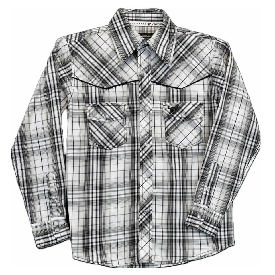 Cowboy Hardware Boy's Forge Plaid White Snap Shirt 325475-020-K