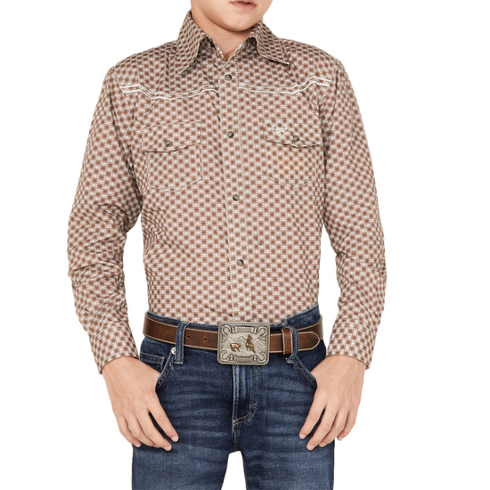 Cowboy Hardware Boys Circle Star Sand Brown Button Down Shirt 325468-083