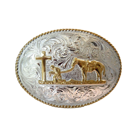 Crumrine Praying Cowboy Western Silver & Bronze Belt Buckle C1037448