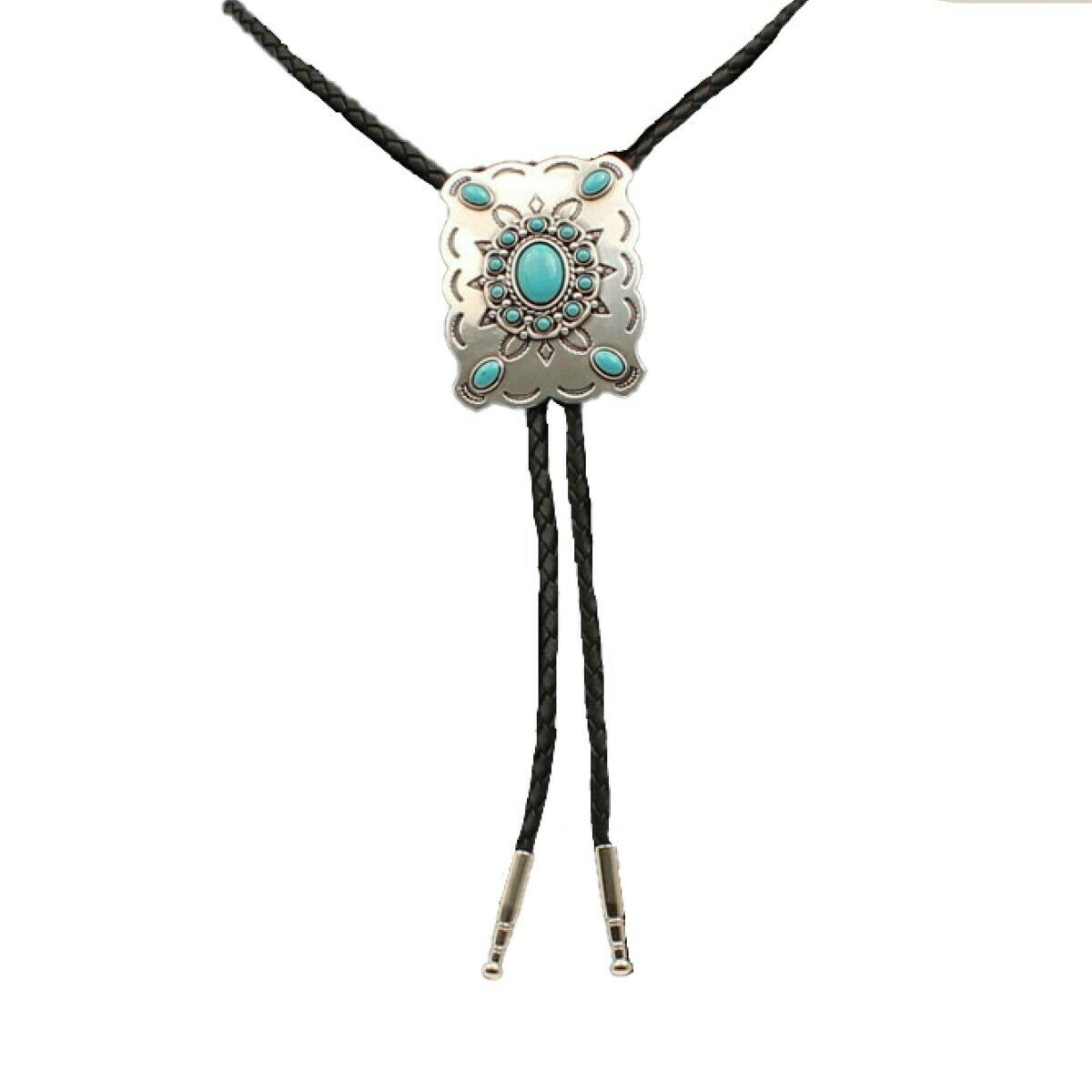 Double S Western Rectangle & Turquoise Slide Bolo Tie 22232