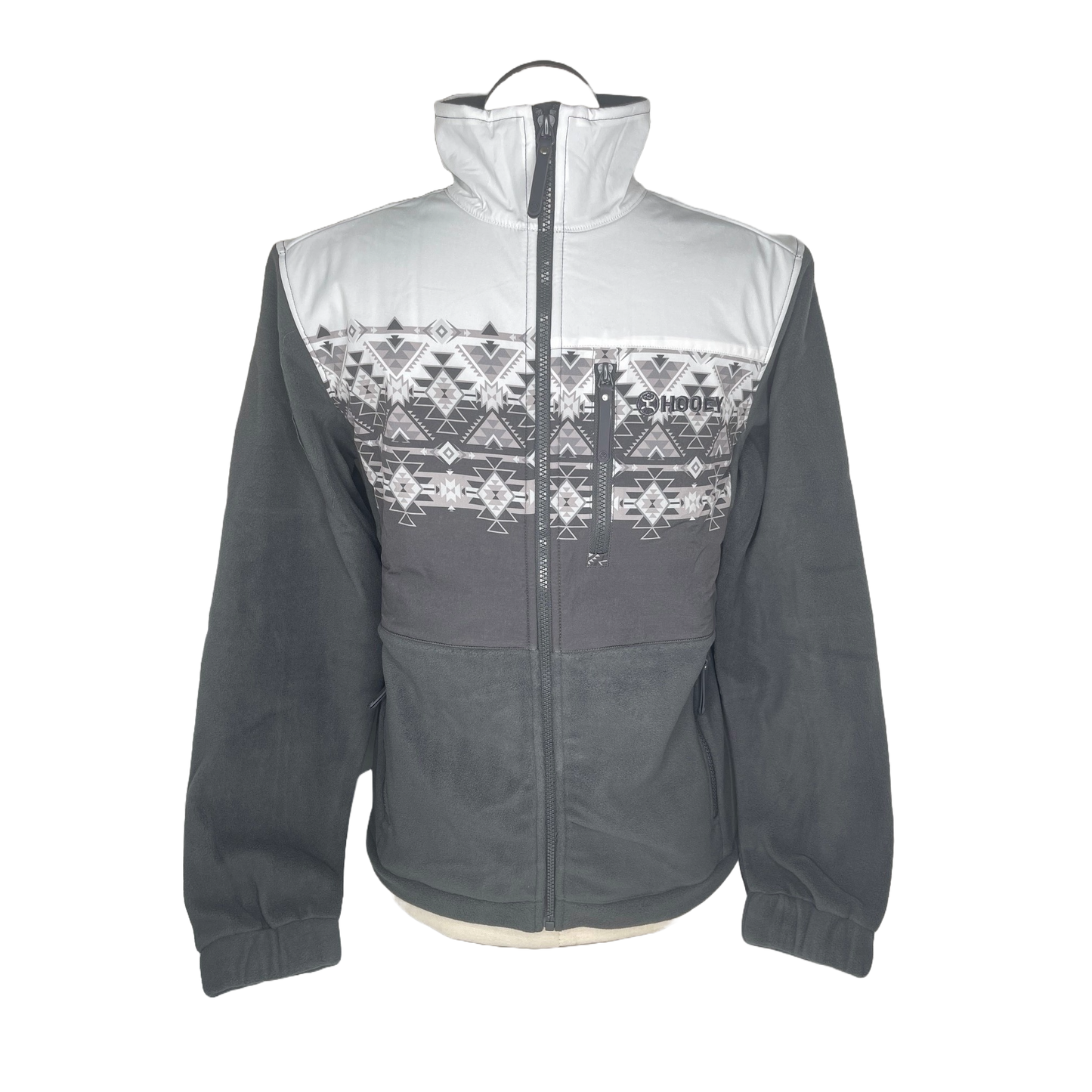 Hooey Men's Aztec Border Charcoal Grey & White Tech Fleece Jacket HJ128BKWH