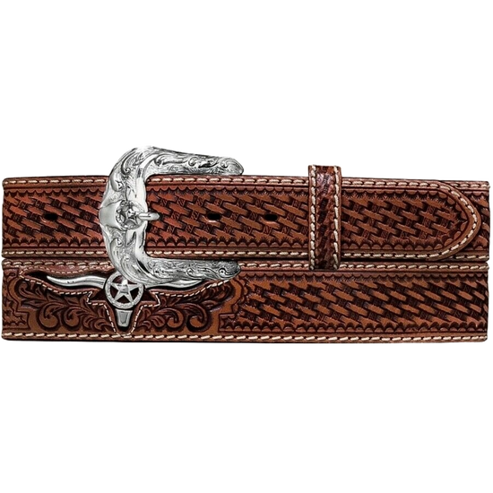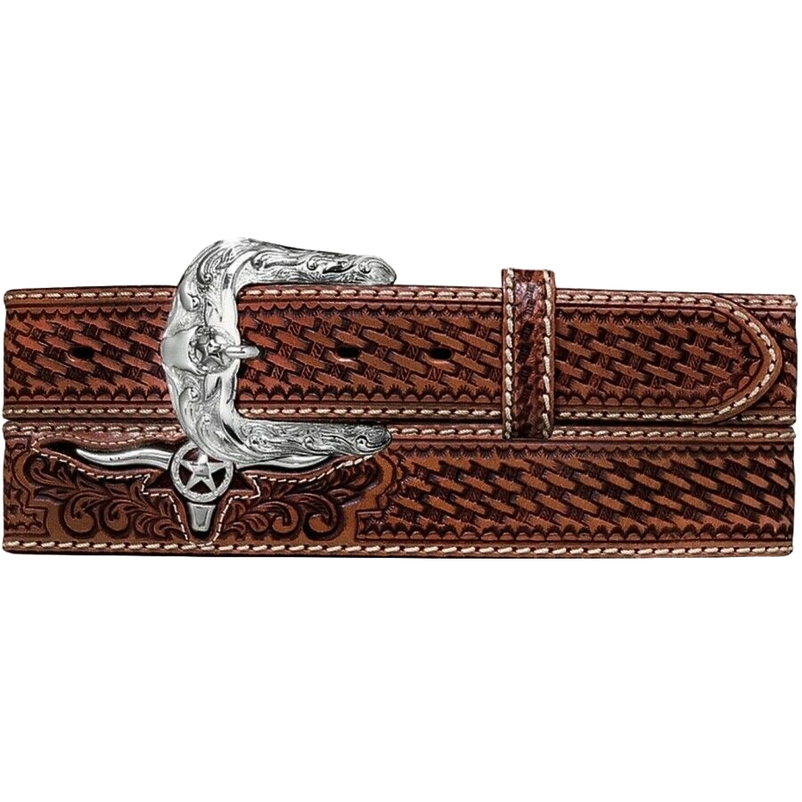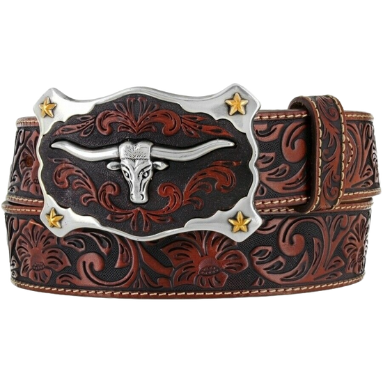 Justin Men's Classic Longhorn Tan Leather Western Belt C11194