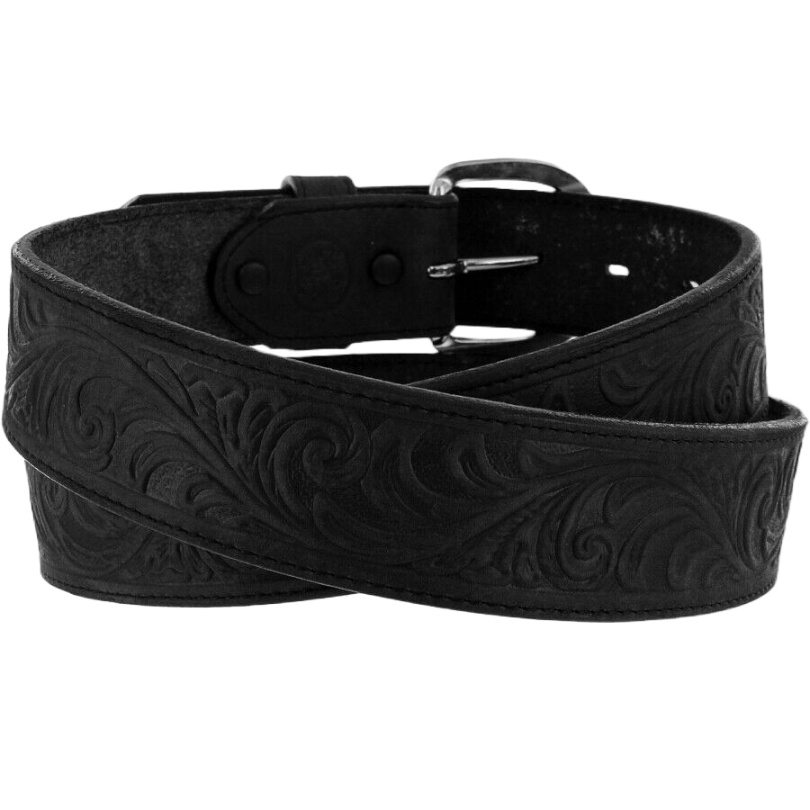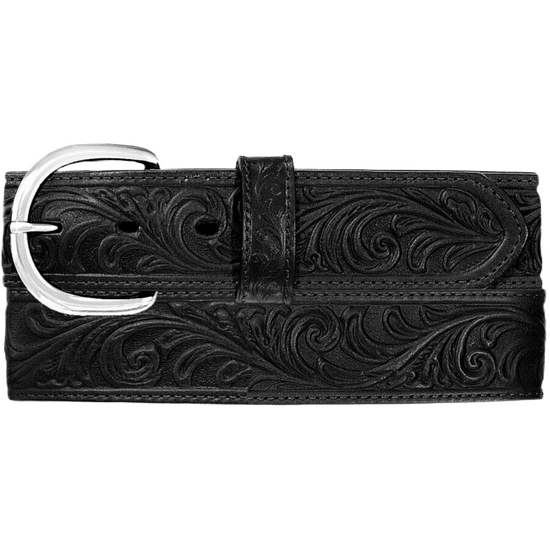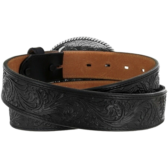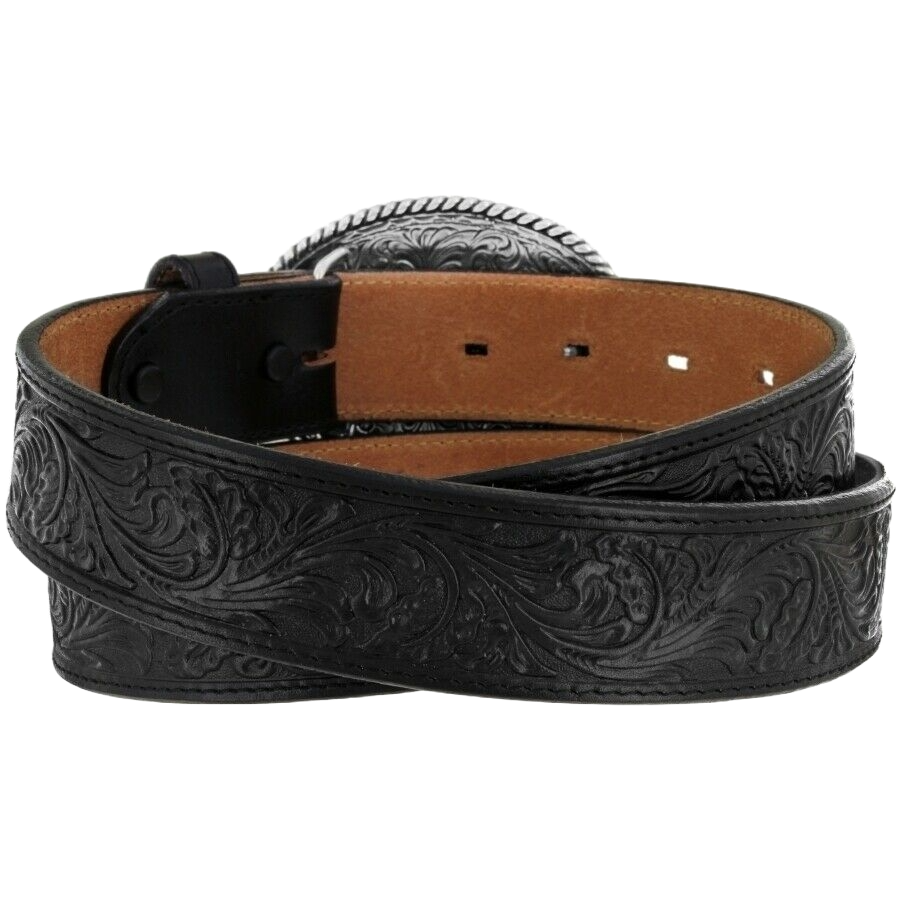 Justin Men's 5 Star Ranch Black Floral Tooled Leather Belt C12423