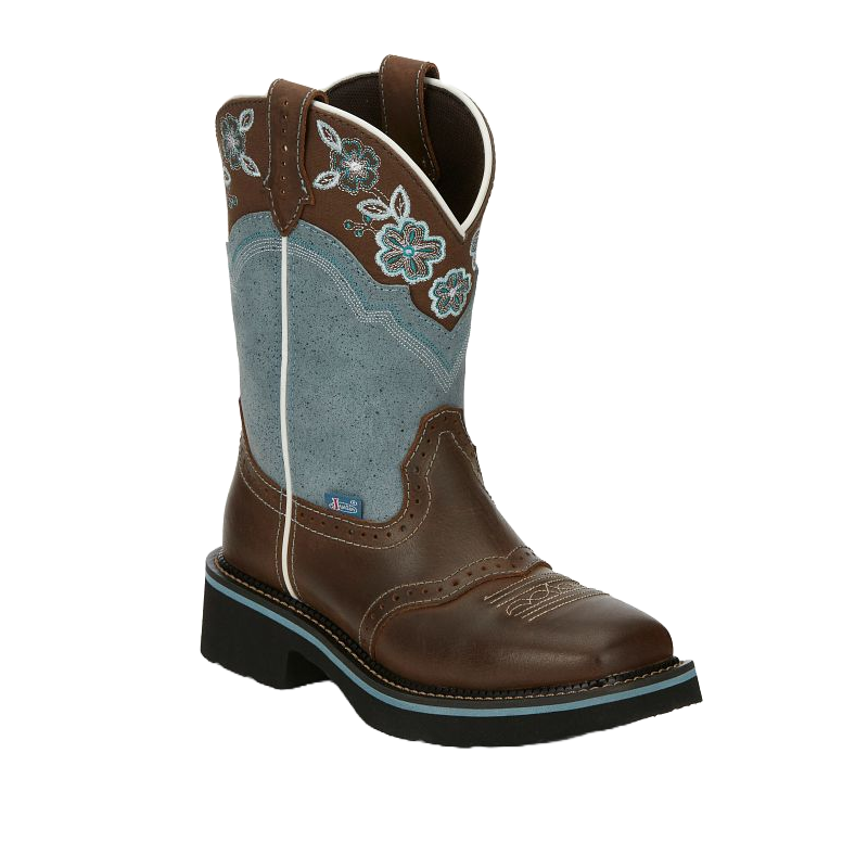 Justin Ladies Annie Up Embroidered Teal & Brown Western Boot FN4121