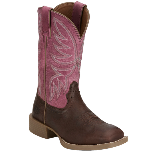 Justin Boot Ladies Sunny Pink & Brown Leather Western Boot GY9540