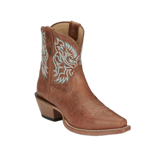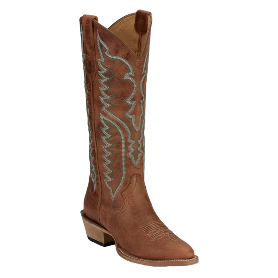 Justin Ladies Miss Ellie Brown Leather & Teal Western Boot FN4202