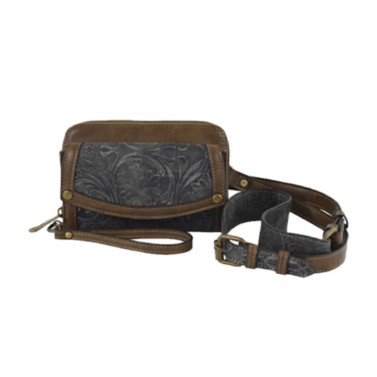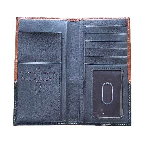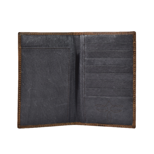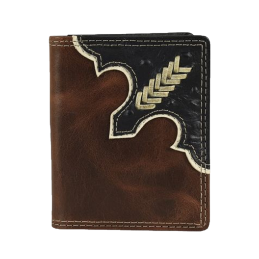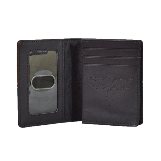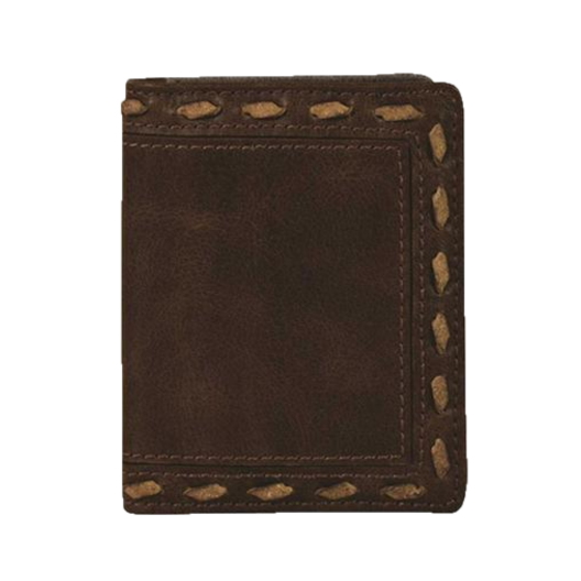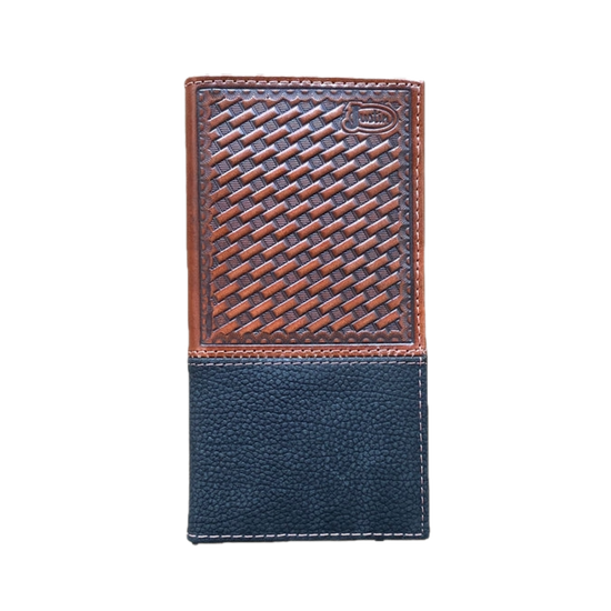 2. Justin Men's Back Pocket Brown Basket Weave Yoke Bifold Wallet 2030768W3