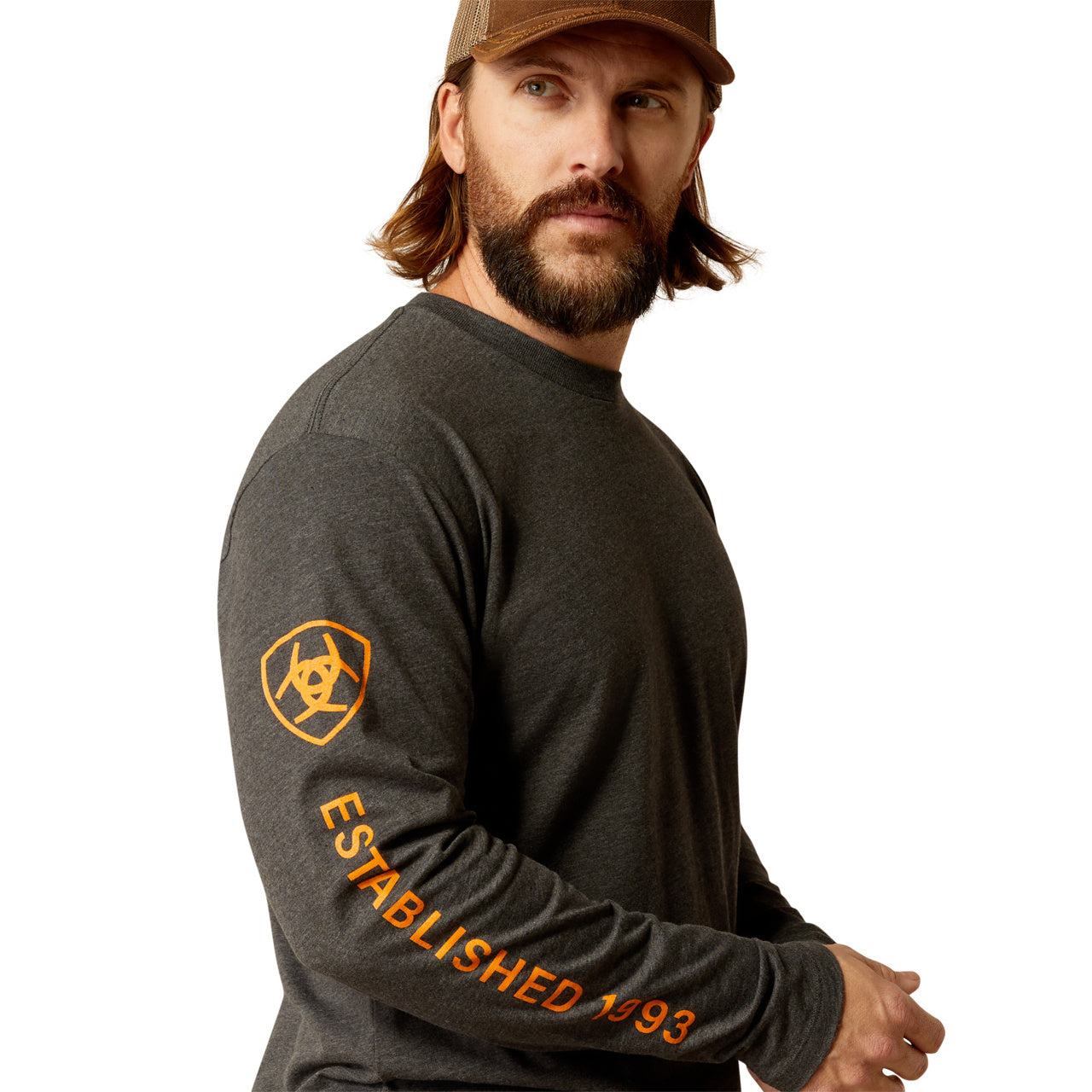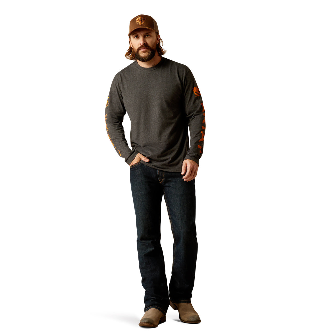 Ariat Men's Rebar CottonStrong™ Brand Flag Charcoal LS T-Shirt 10037700