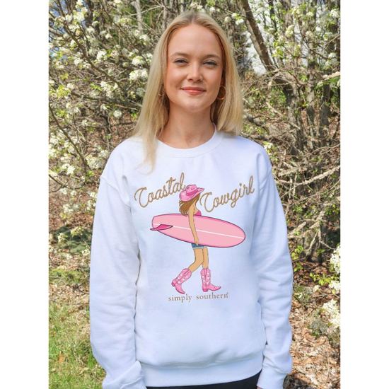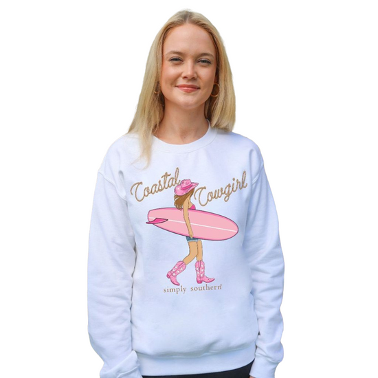 Simply Southern Ladies Coastal Cowgirl White Pullover Sweatshirt CREW-COASTALCOWGIRL