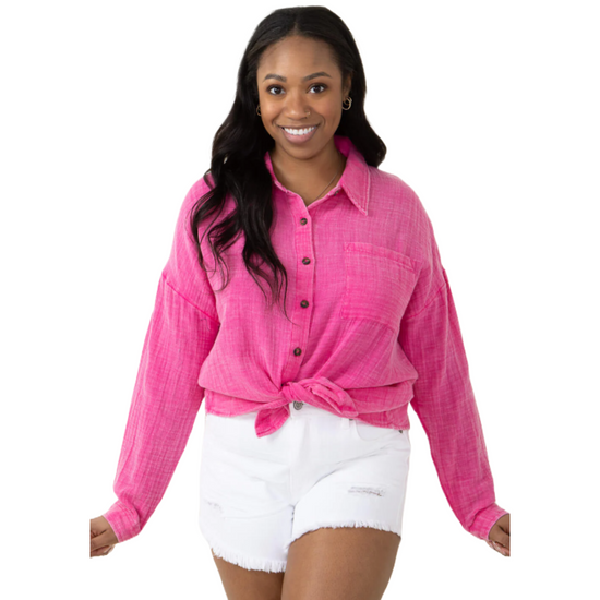 Simply Southern Ladies Gauze Hot Pink Button Down Shirt 0124-BTNDWN-GZE-HTPNK