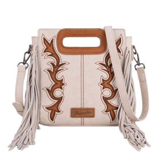 Wrangler Brown Orange Fringe Floral Tooled Hobo Bag WG239-9182BR-OR