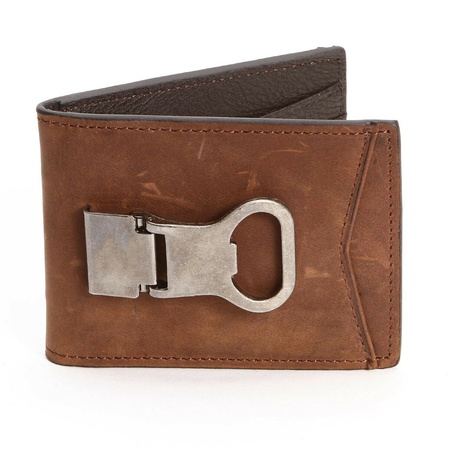 Nocona Mens Brown Double Barrel Bifold Bottle Opener Money Clip Wallet N5488044