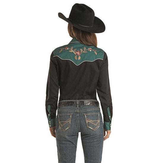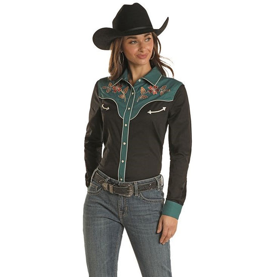 Panhandle® Ladies Solid Black Stretch Poplin Snap Shirt PSWSOSRZ2N-01