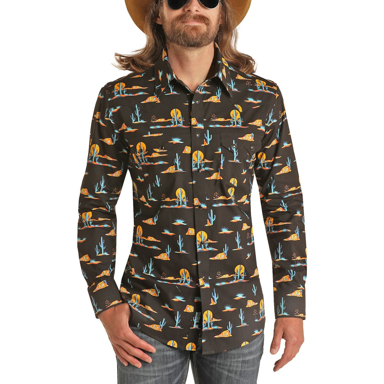 SaleRock & Roll Cowboy Long Sleeve Desert Print Orange Snap Shirt B2S3305
