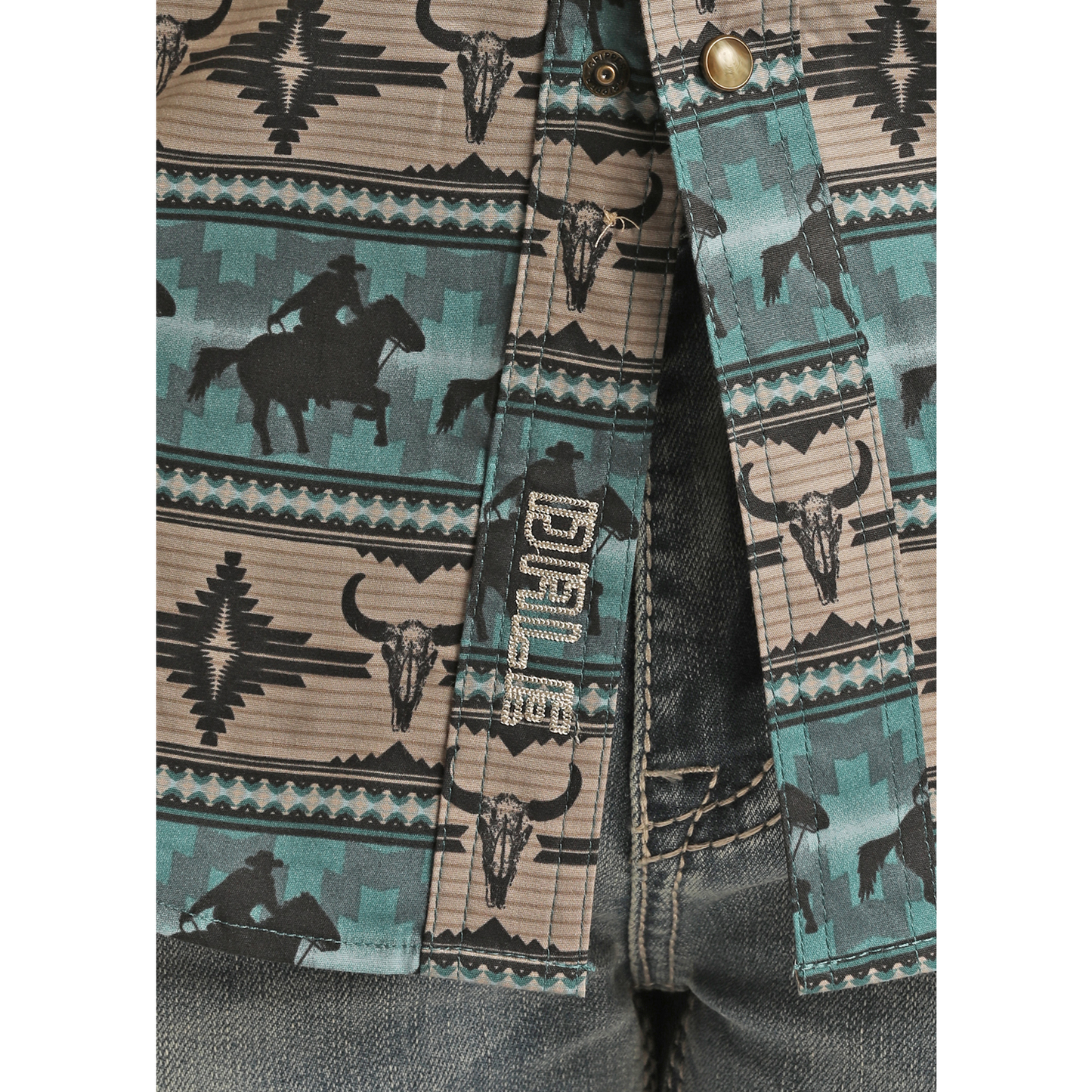 SaleRock & Roll Cowboy Men's Aztec Bright Turquoise Snap Shirt 36S3165