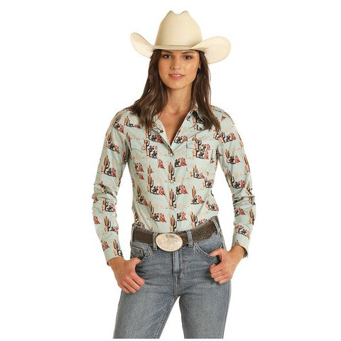 Rock & Roll Cowgirl® Ladies Western Cactus Print Snap Up Shirt B4S3325