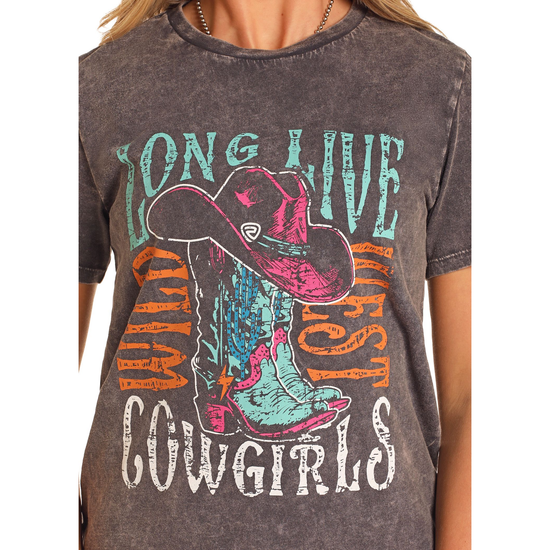 Rock & Roll Denim Ladies Long Live Cowgirls Black T-Shirt BW21T04522