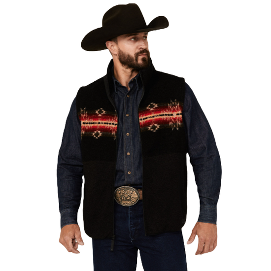 3. Rock & Roll Denim Men's Berber Aztec Boarder Black Vest BM98C04314