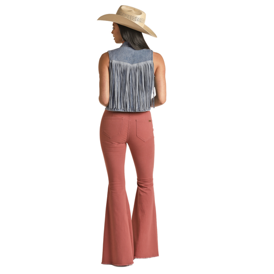 1. Rock & Roll Denim Ladies Fringe Medium Wash Vest RRWD98R114