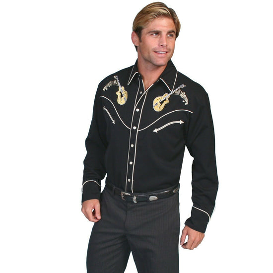 Scully Men's Black Guitar Western Shirts P-665-BLK