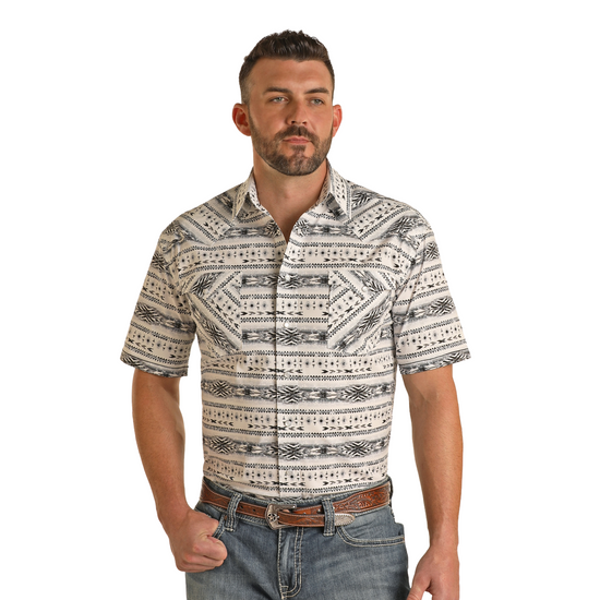 SalePanhandle Men's Southwest Aztec Stripe Black & White Snap Shirt RMN3S03846