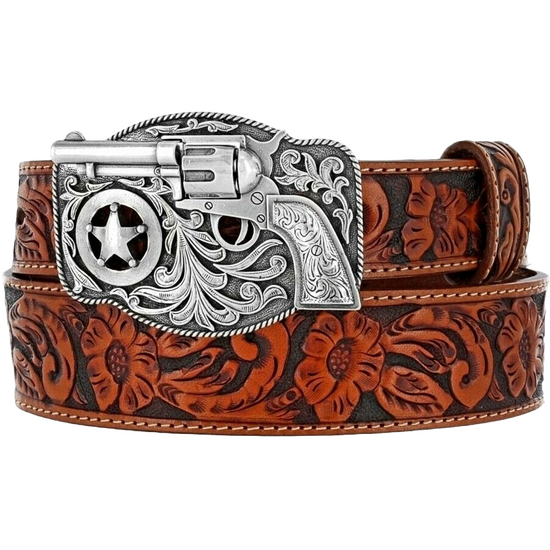 Justin Children's Lil' Trigger Peanut Brown Tooled Leather Belt C30124