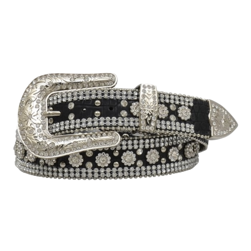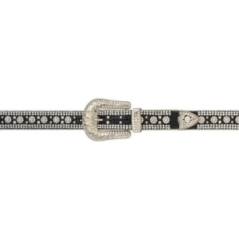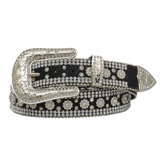 Angel Ranch Ladies Black Gator Print Studded Glitz Leather Belt DA1070