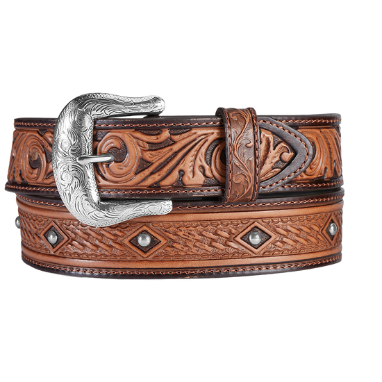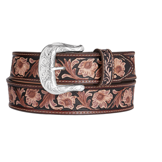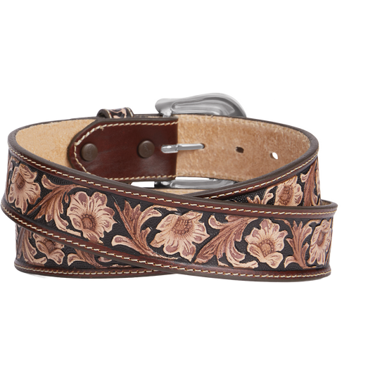 Ariat Men's Belt 1 1/2 Floral Embossed Aged Bark A1020444