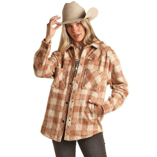Cruel Denim® Ladies Orange Fringe Plaid Shirt Jacket CWJ7407001