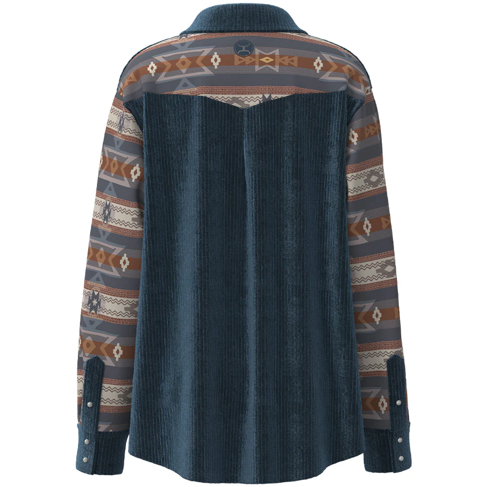 Hooey Ladies Aztec Pattern Blue Snap Corduroy Shacket HJ122BLAZ