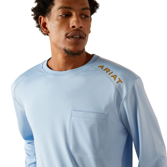 11. Ariat Men's Rebar Sunblocker Placid Blue Work T-Shirt 10054424