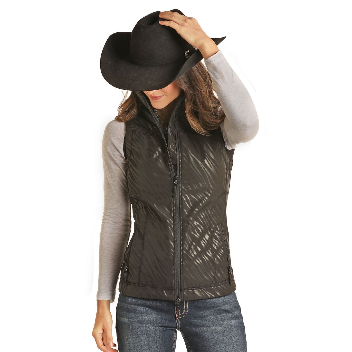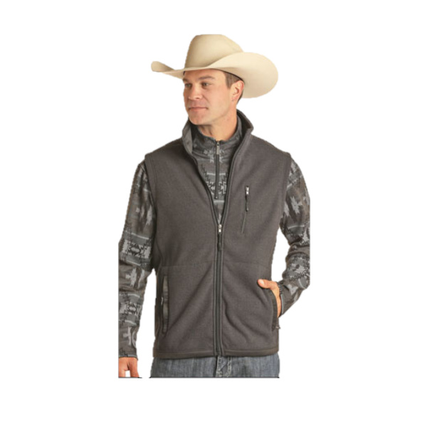 Powder River Outfitters Men's Full Zip Black Softshell Vest 98-9652-01