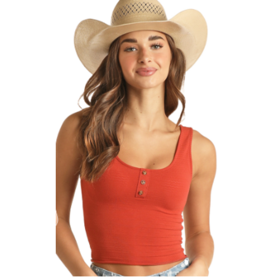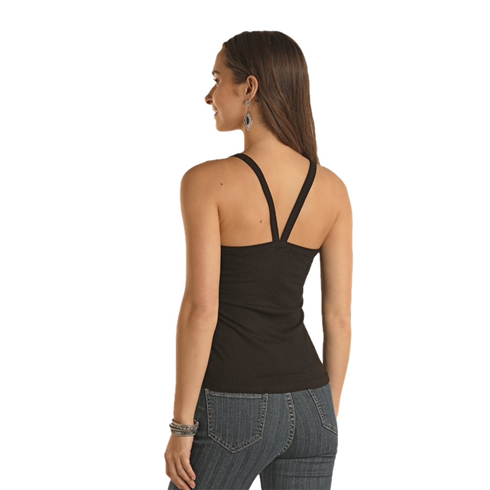 Panhandle Ladies Side Cinch Ribbed Black Cami Top JW20T04412-01