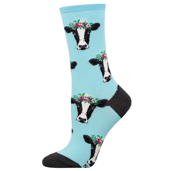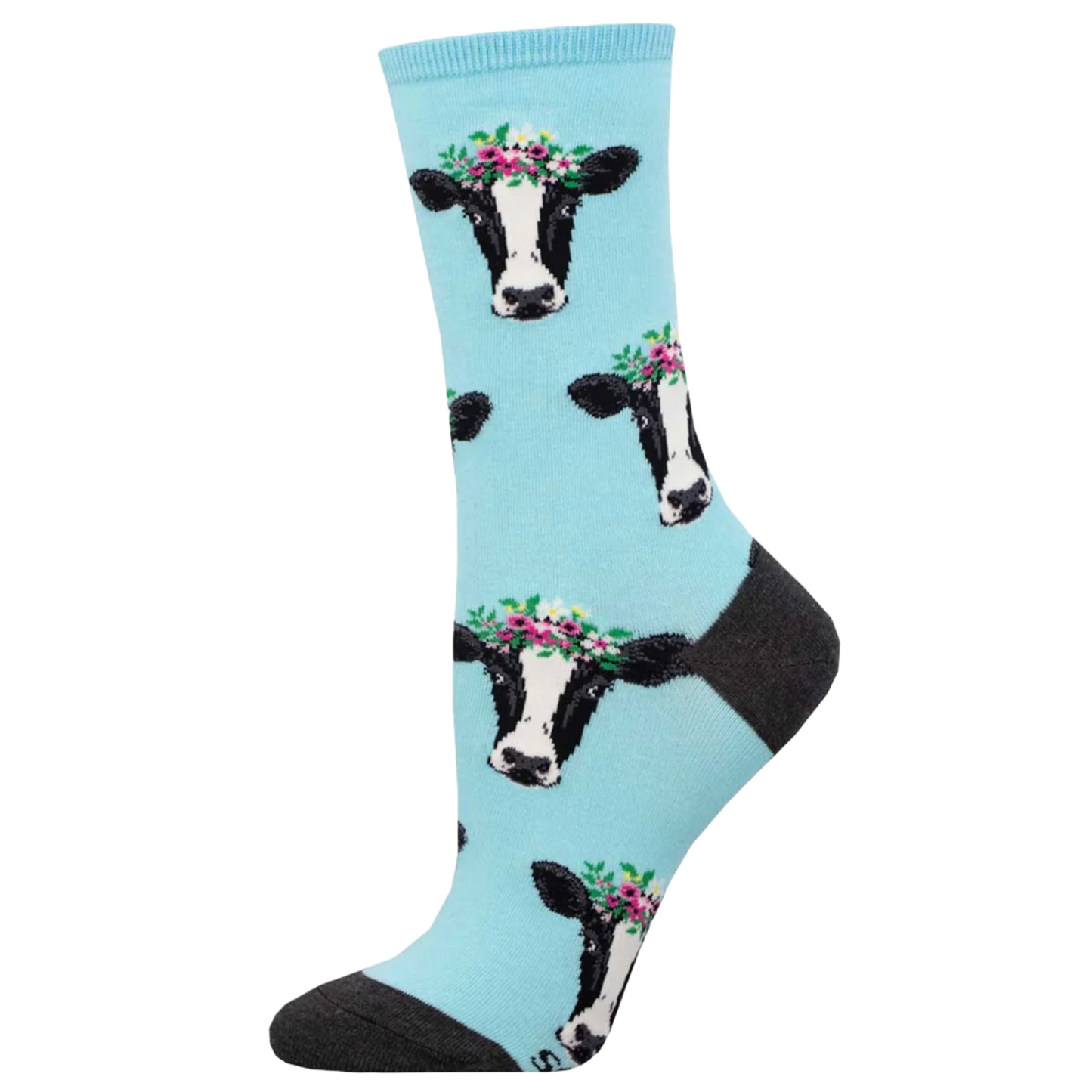 Sold OutSockSmith® Ladies "Wow Cow" Graphic Baby Blue Crew Sock WNC3263-BLU