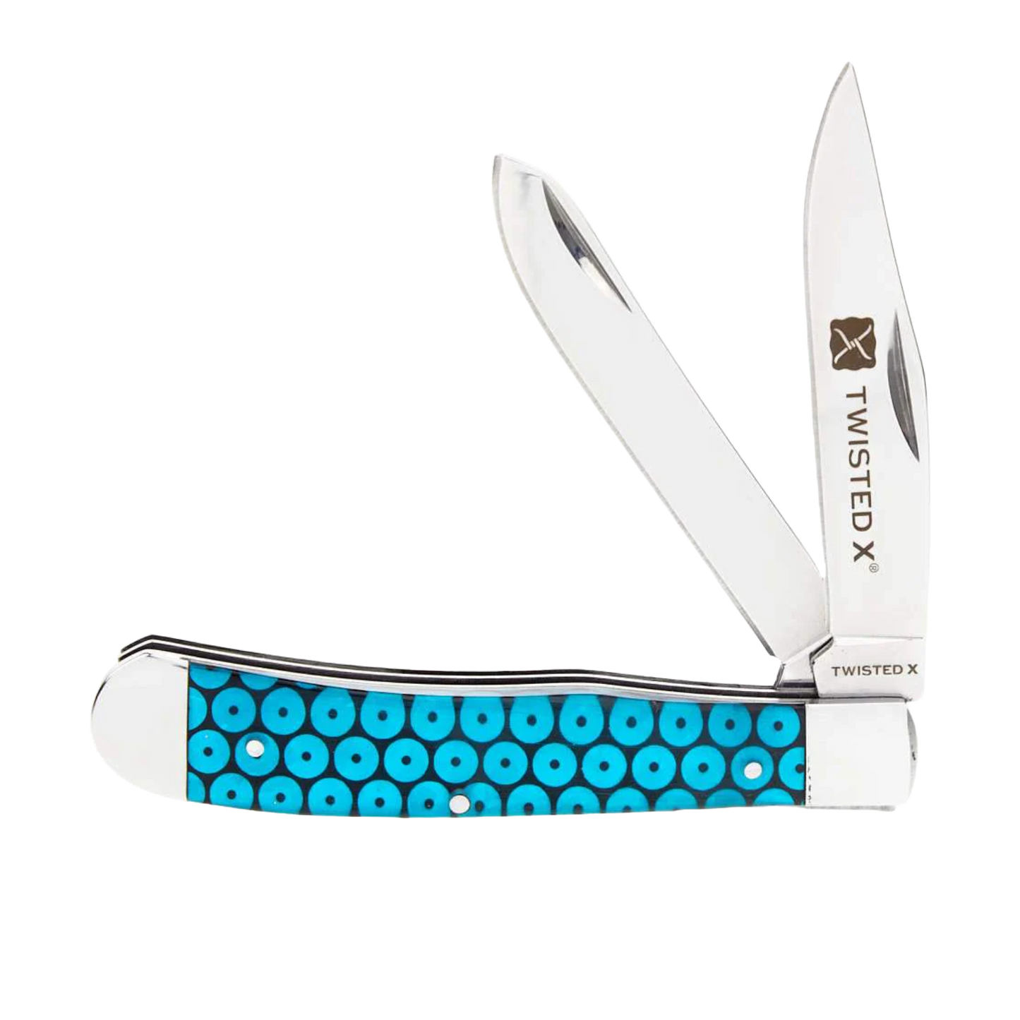 Twisted X Blue Sequin Double Blade Trapper Knife XK411