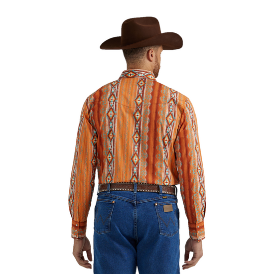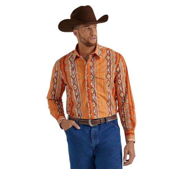 Wrangler Men's Checotah Aztec Print Orange Bowl Snap Shirt 112365887