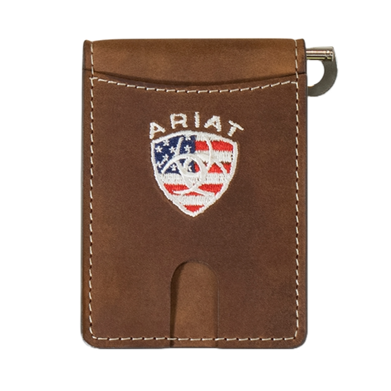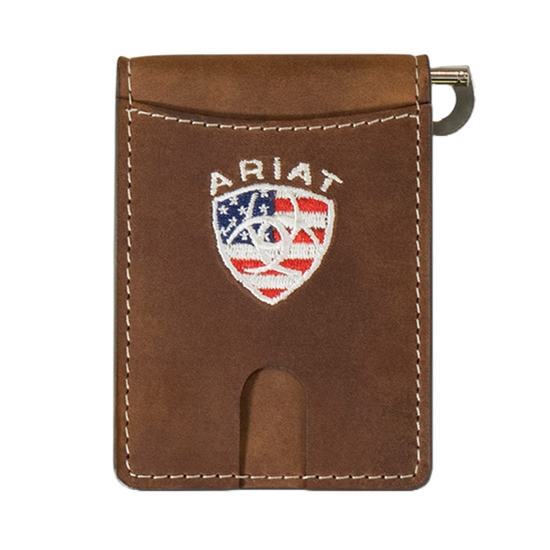Ariat American Flag Logo Aged Bark Money Clip Wallet A35550217
