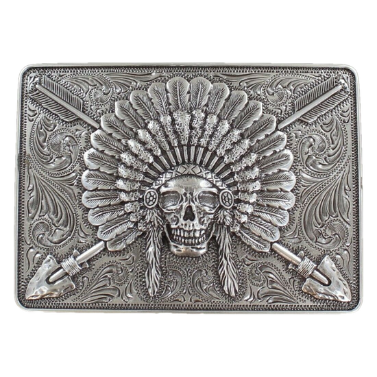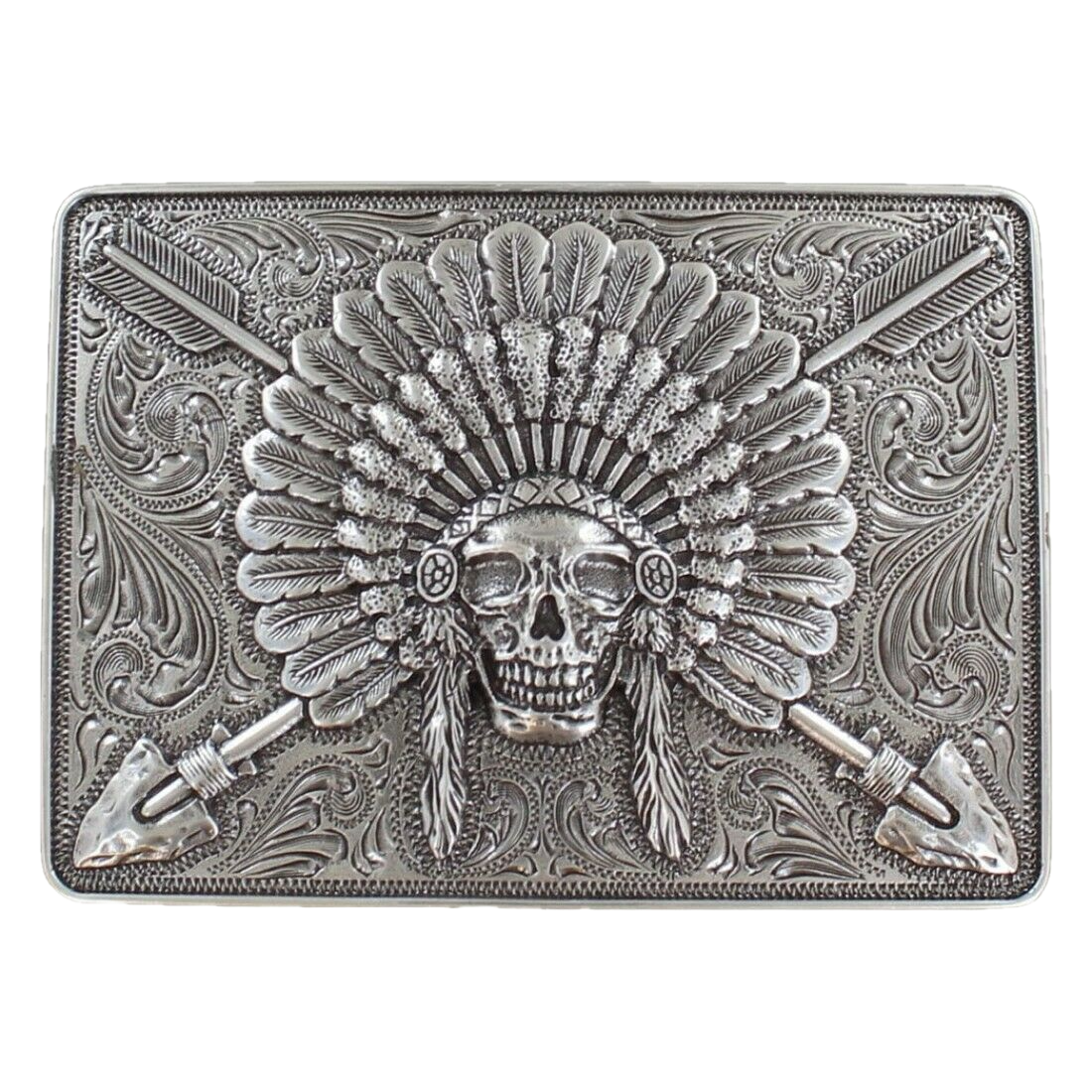Ariat Indian Chief Skull Rectangle Silver Belt Buckle A37009