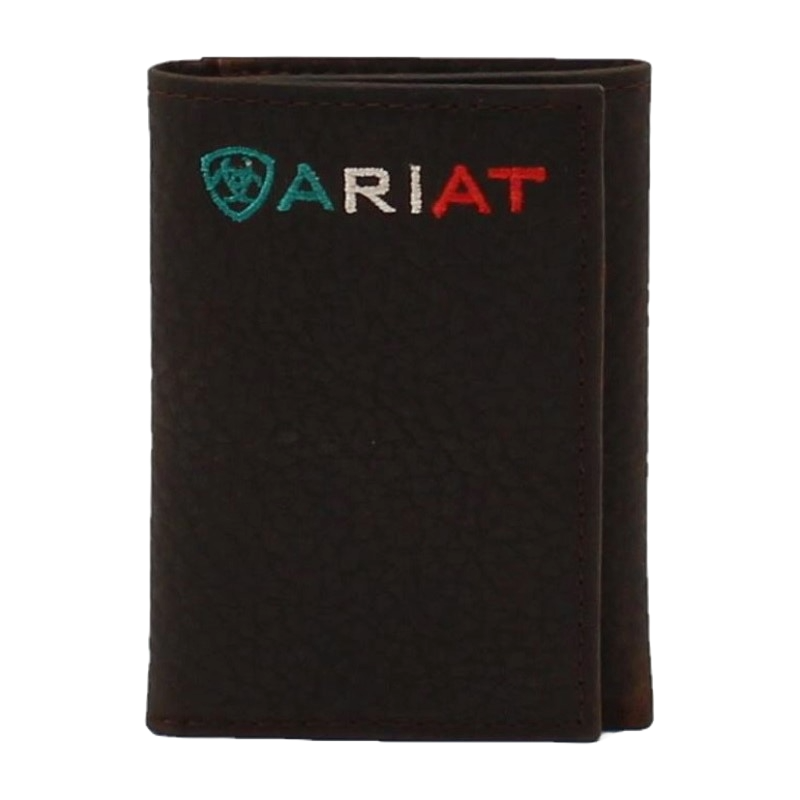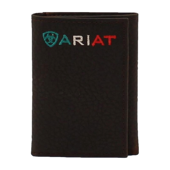 Ariat® Men's Mexico Flag Logo Brown Leather Trifold Wallet A35508282