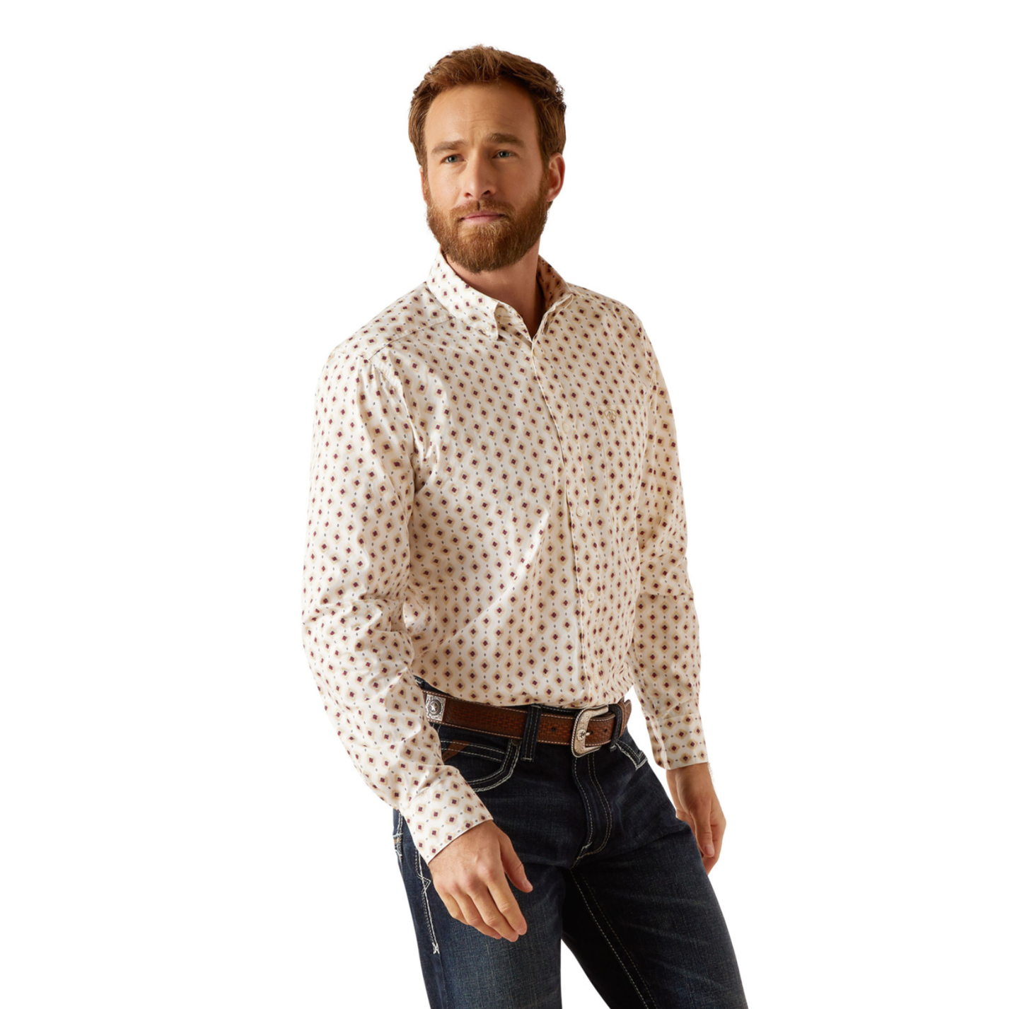 Ariat Men's Naten Fitted White Printed Button Down Shirt 10047374