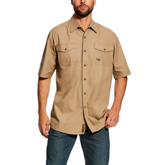 Ariat® Men's Rebar Made Tough Khaki Short Sleeve Work Shirt 10025391
