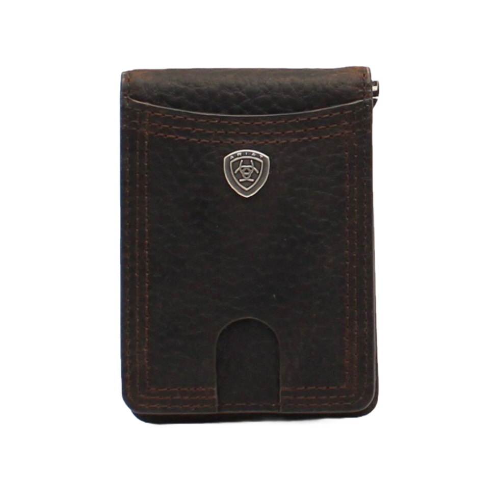 Ariat® Men's Rowdy Shield Logo Brown Money Clip Bifold Wallet A35117282