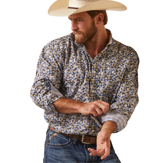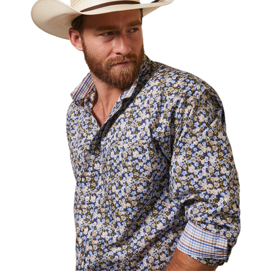 Ariat® Men's Wrinkle Free Ashton Floral Indigo Button Down Shirt 10043805