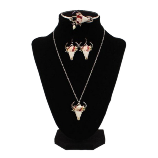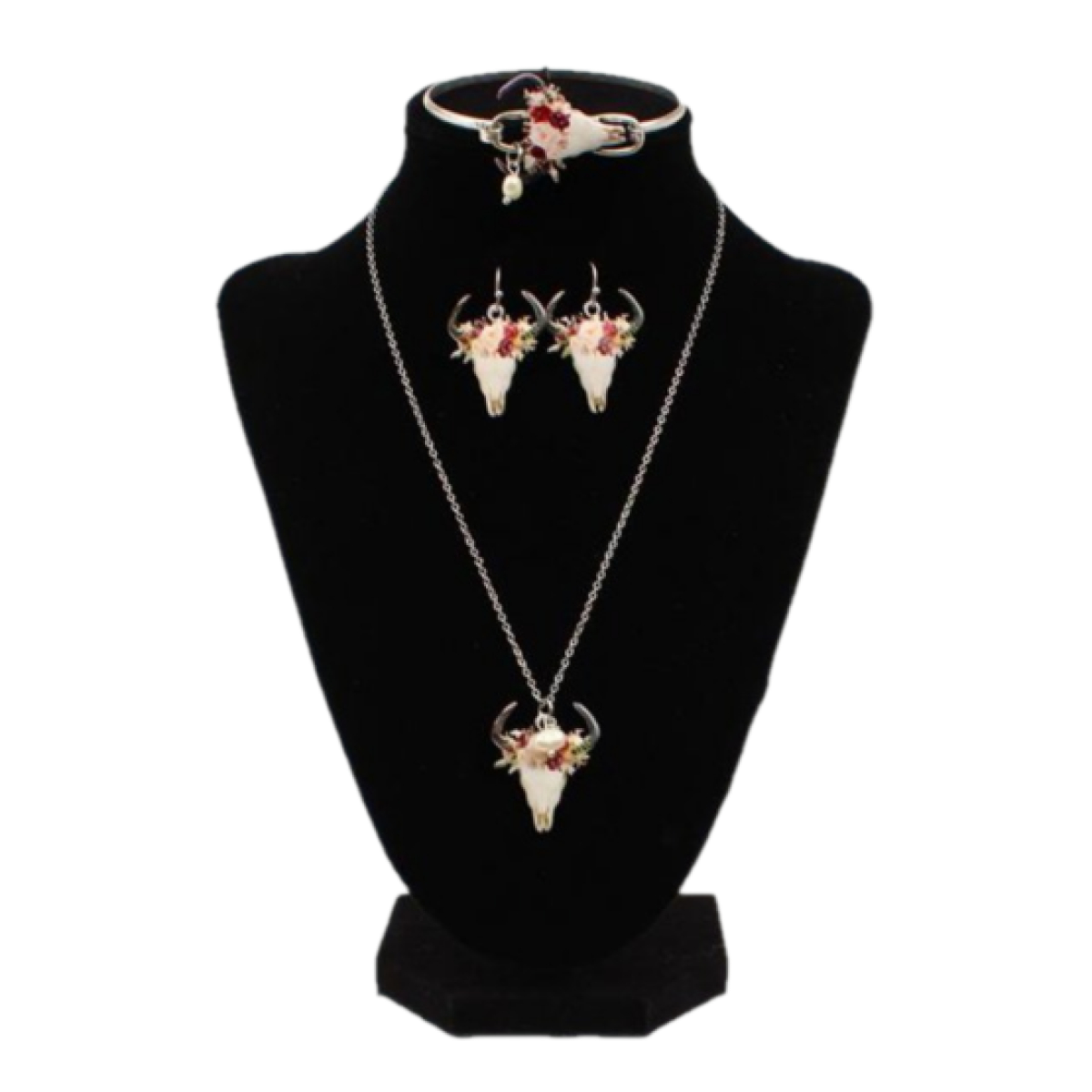 Blazin Roxx® 3 Piece Floral Steer Head Silver Jewelry Set 30947