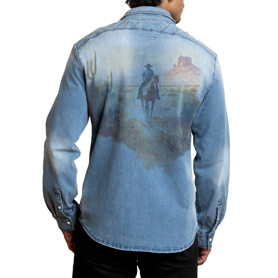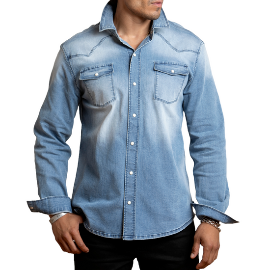 Canyon Of Heroes Men's Wild West Stretch Light Blue Denim Shirt WS23008-LB