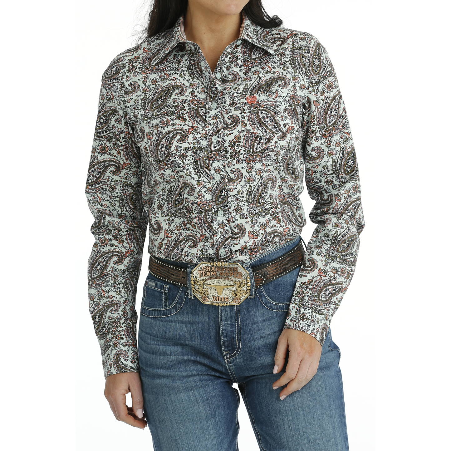Cinch Ladies Light Blue Paisley Print Button Down Shirt MSW9164218
