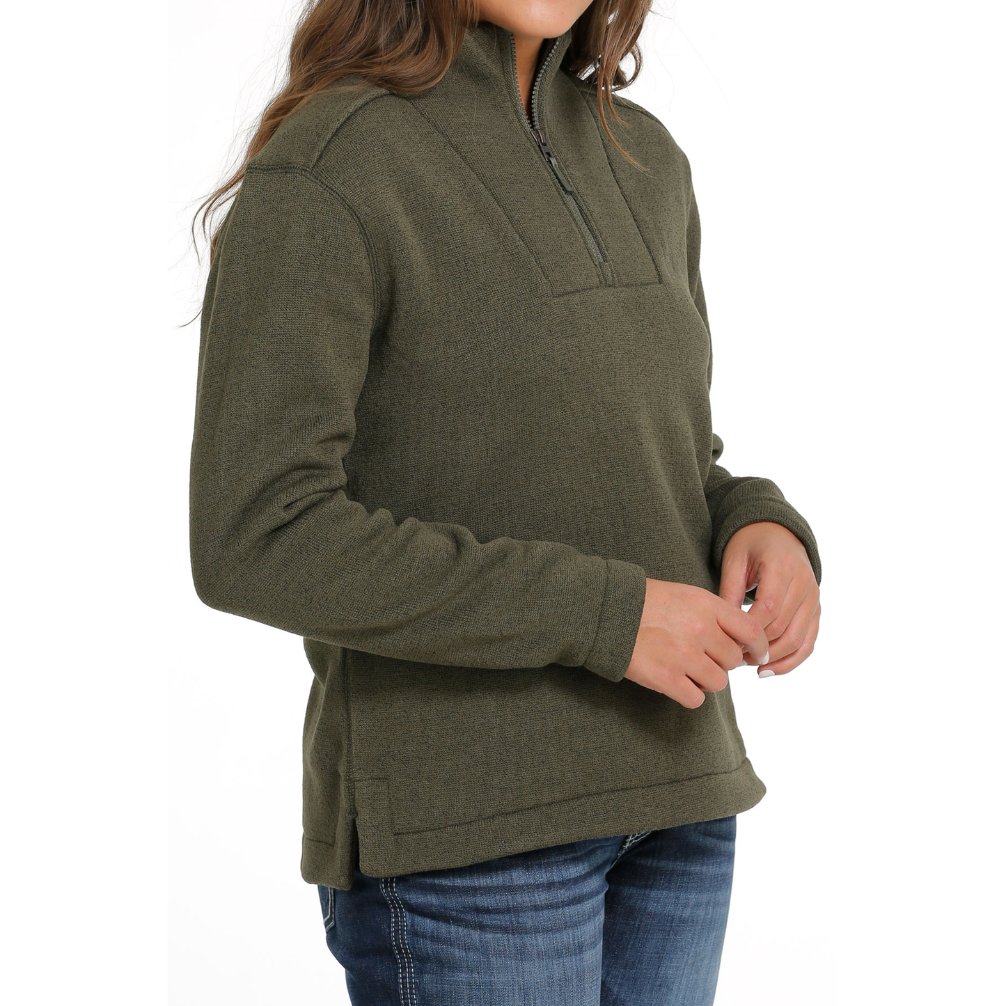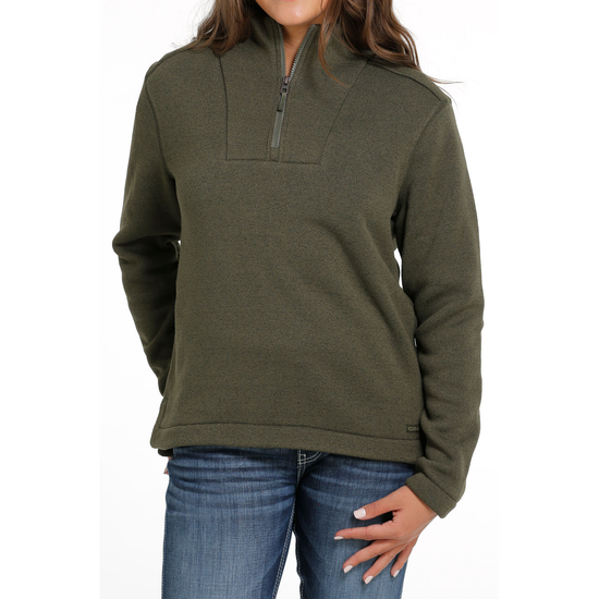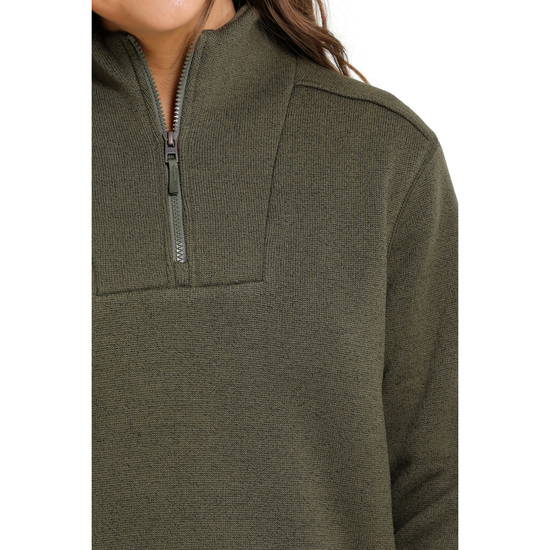 Cinch Ladies Olive Green Quarter Zip Pullover Sweater MAK9810004