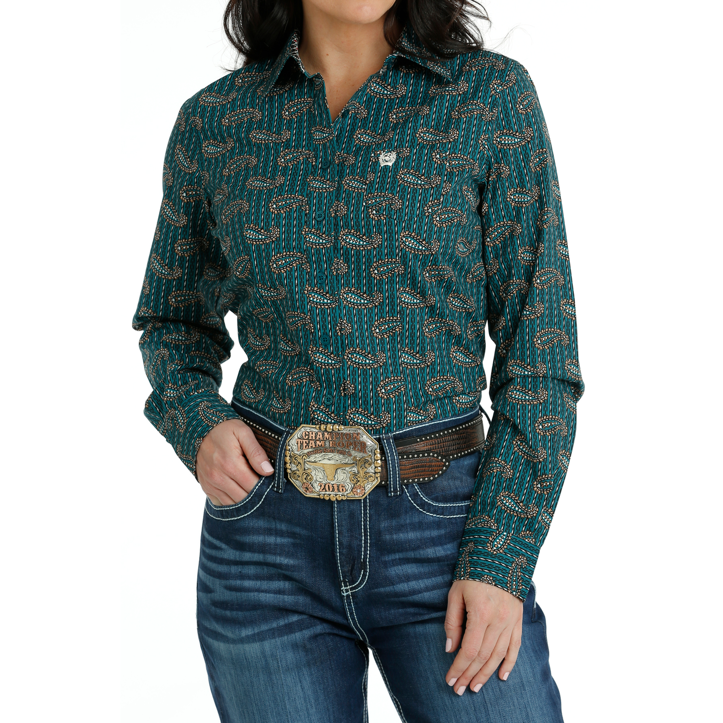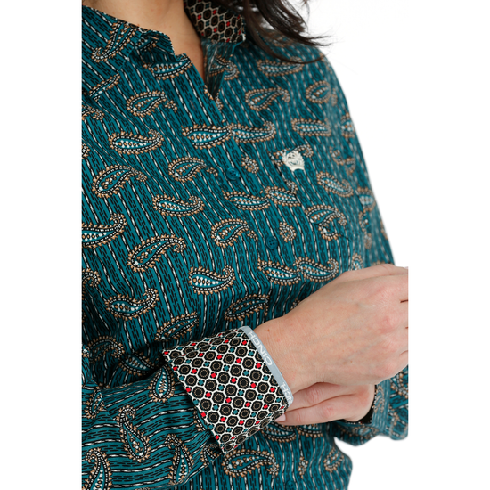 Cinch Ladies Teal Paisley Print Button Down Shirt MSW9164209