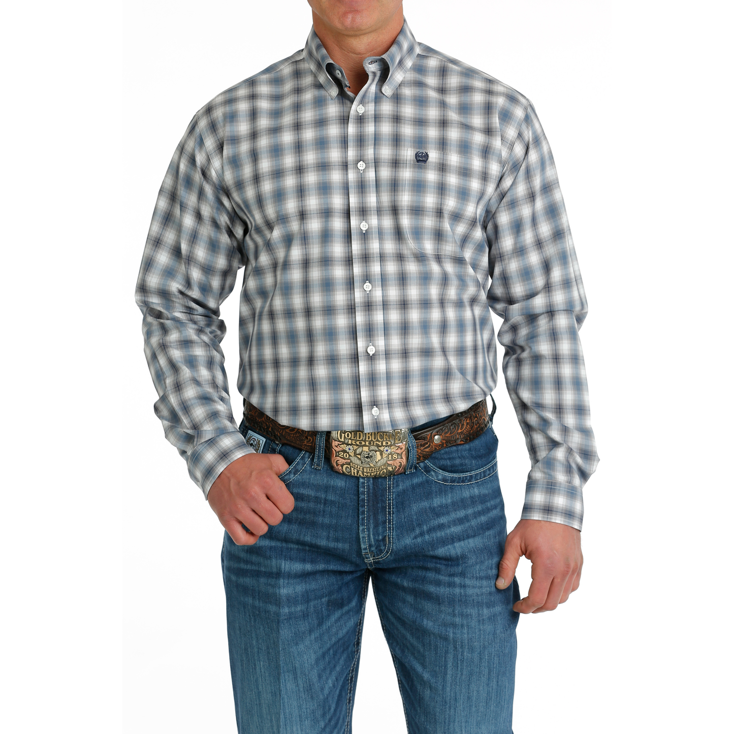 Cinch Men's White Plaid Button Down Shirt MTW1105697