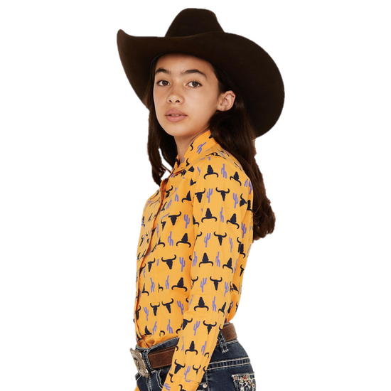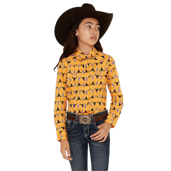 Cruel Denim® Youth Girl's Gold Longhorn Snap Down Shirt CTW3370011